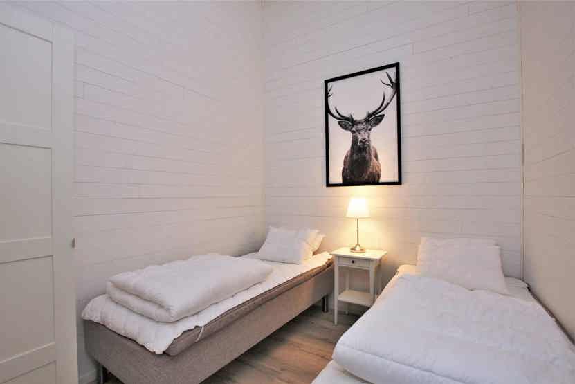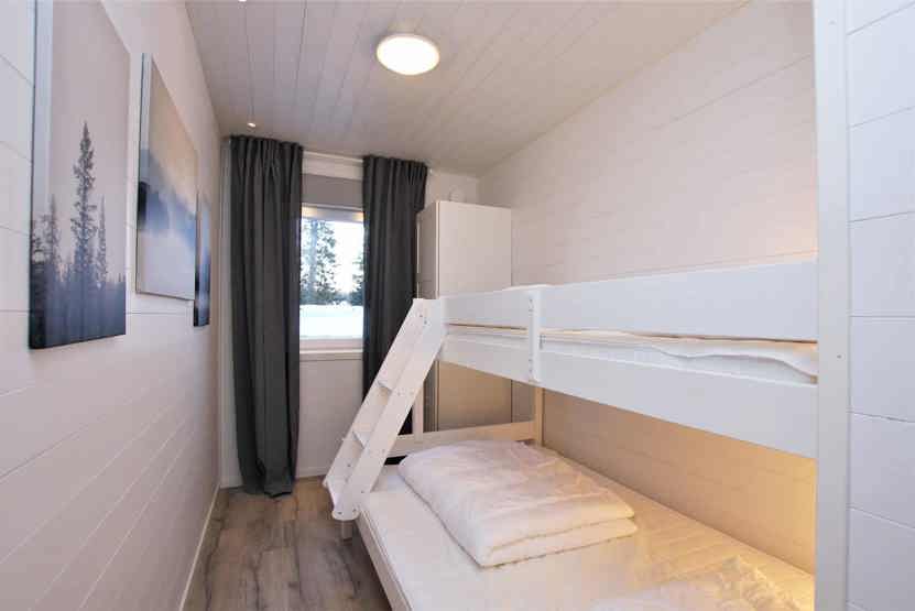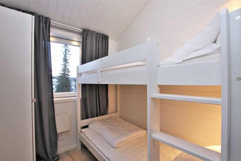 Soveværelse-1 = 1 dobbeltseng. Soveværelse-2 = 1 dobbeltseng. Soveværelse-3 = 1 køjeseng med 120 cm bred underkøje. Soveværelse-4 = 1 køjeseng hvor både over og underkøje er 90 cm bred.