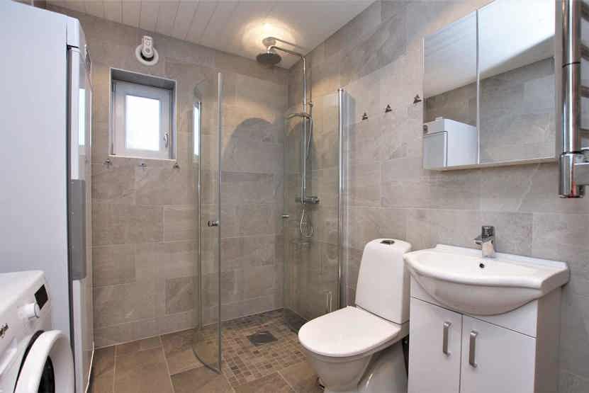 Badeværelse 1 = bruser/WC/sauna. Badeværelse 2 = bruser/WC.