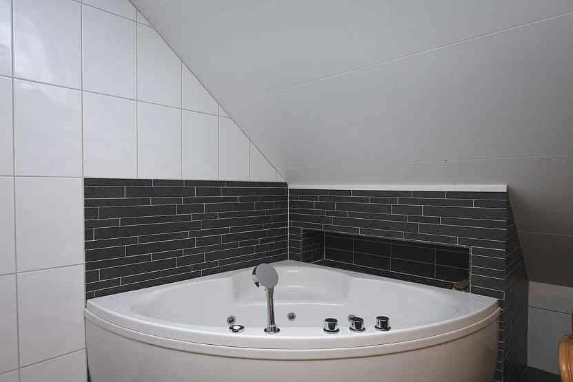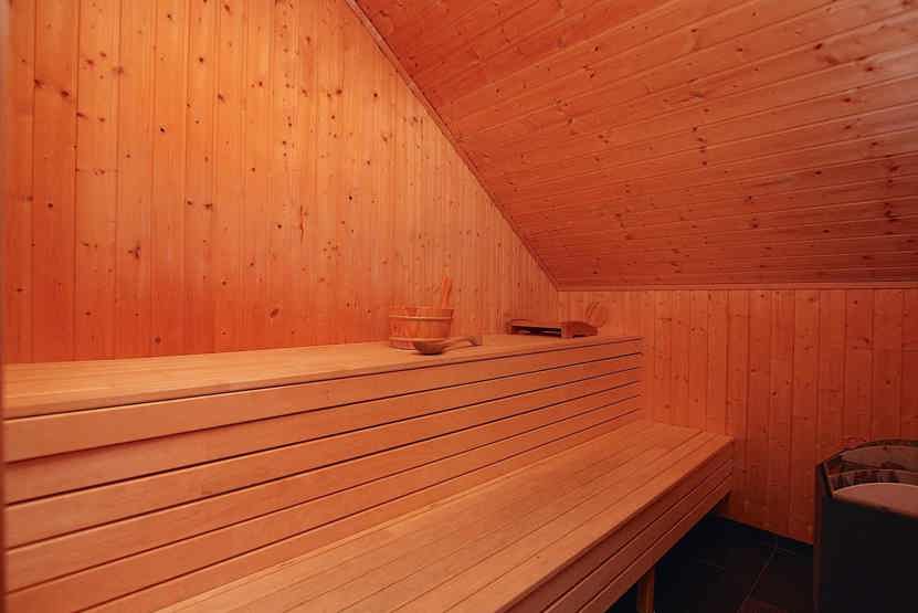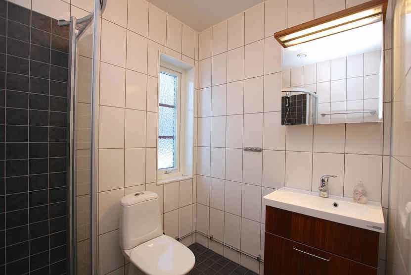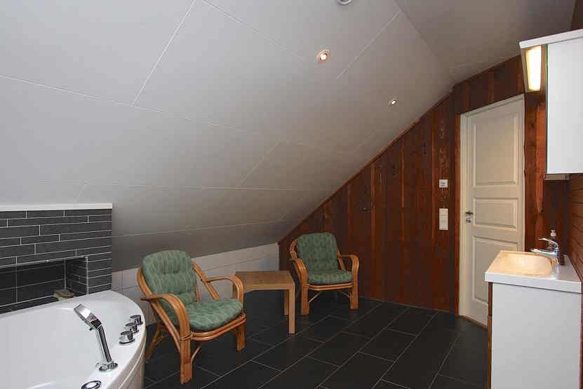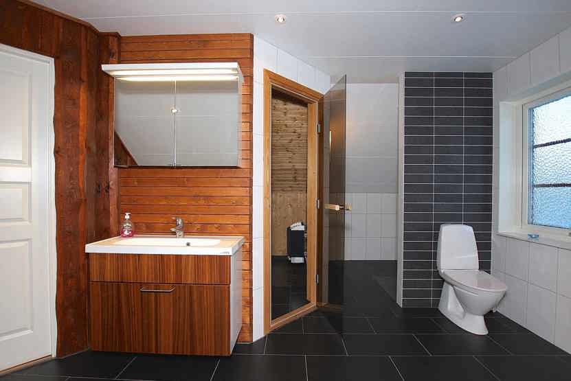 Badeværelse 1 = bruser/WC. Badeværelse 2 = bruser, hjørnebadekar, WC og sauna.