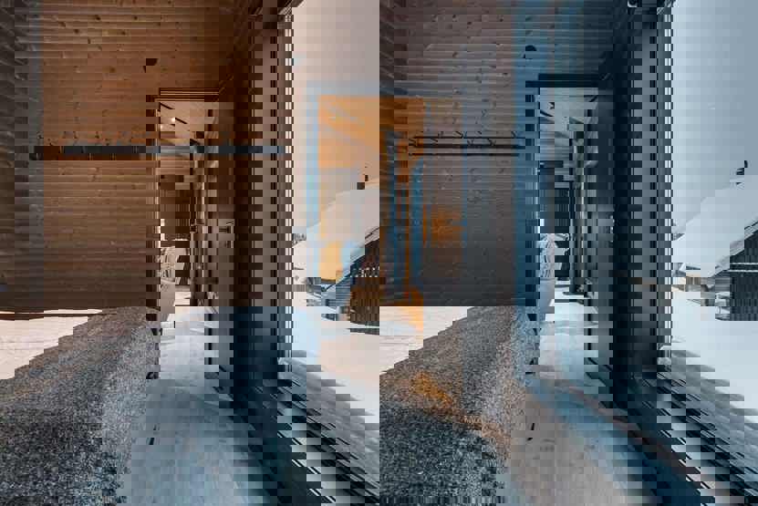 tørreskab, kombineret vaskemaskine/tørretumbler, tørrerum, skiopbevaring, 2 parkeringspladser, stejl bakke til hytten.