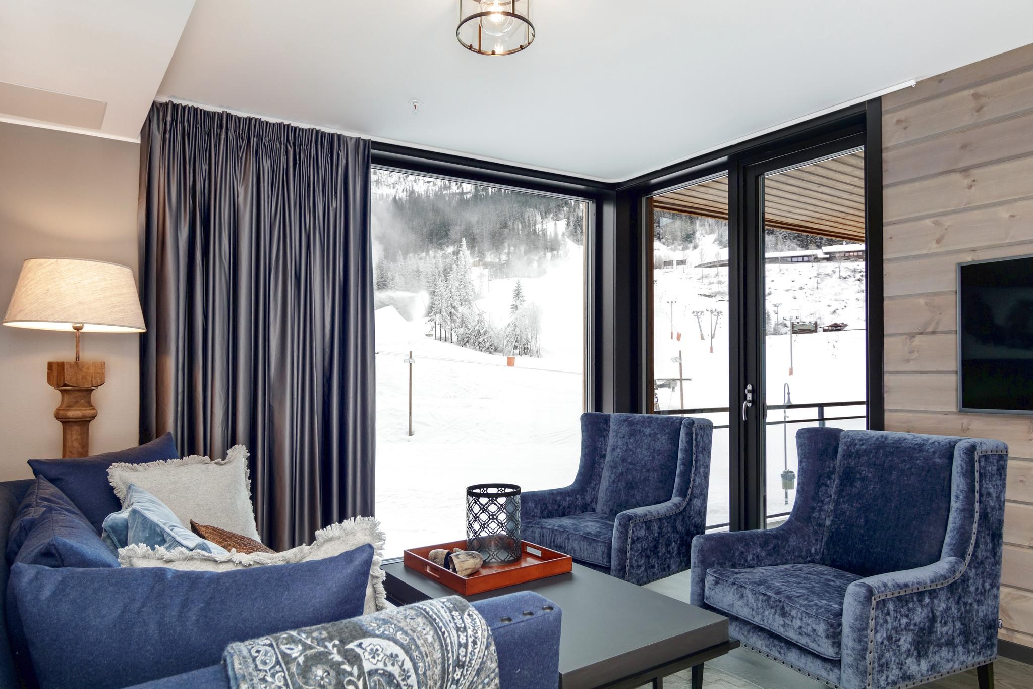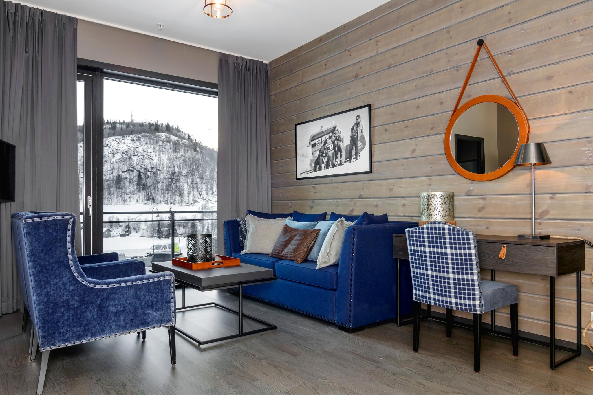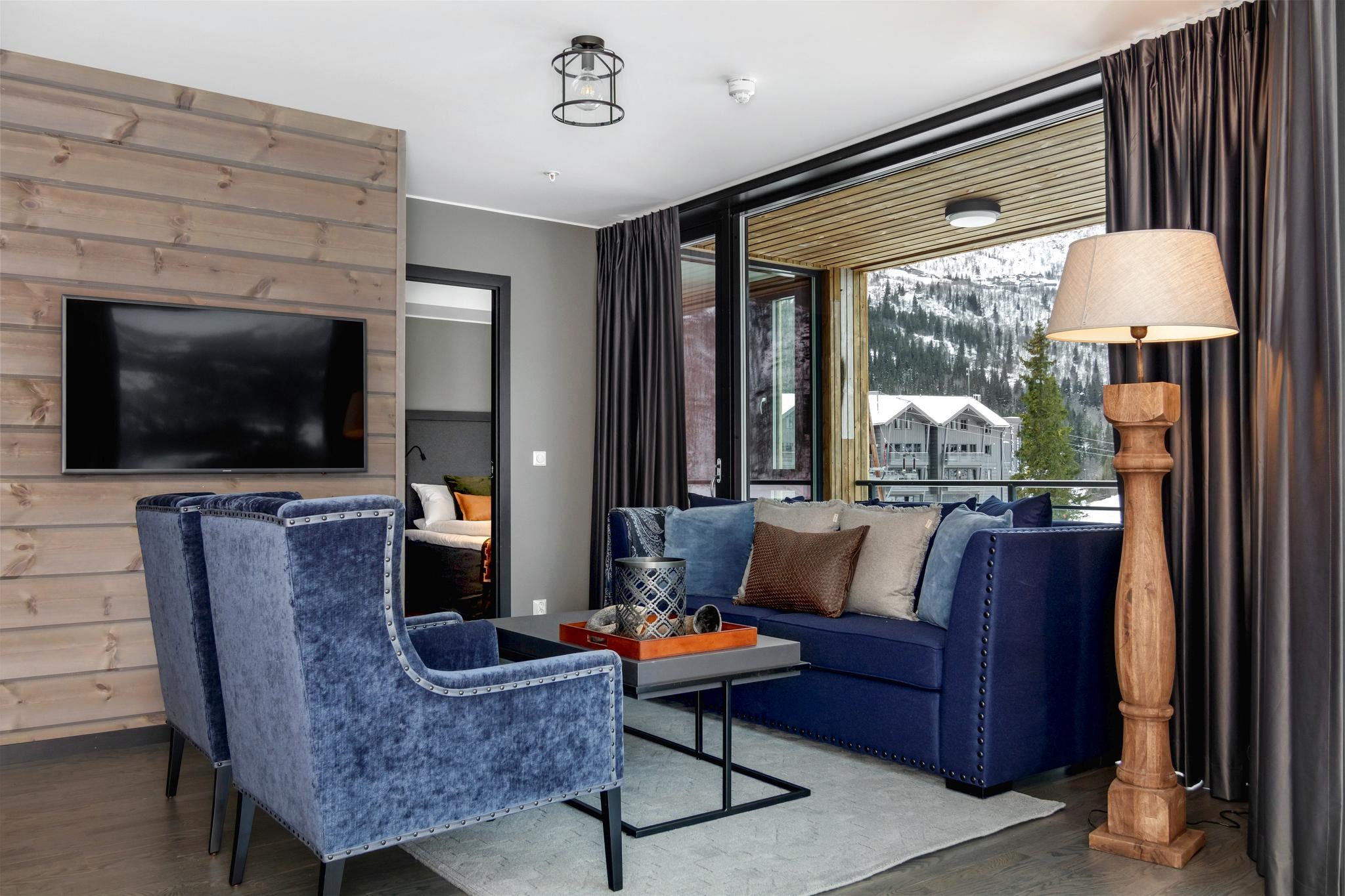 Skistar Lodge Hemsedal. Lækre lejligheder, velegnet til familien. Den bedste beliggenhed ved det store børneområde i Hemsedal Skisenter. Her bor man med ski in / ski out.. Lejlighederne er moderne og veludstyret med masser af komfort for den lille familie der ønsker 4 senge til 10 senge til store familie eller vennegrupper. SkiStar Lodge Hemsedal består af to bygninger, der er bygget sammen med en gangbro, så du hurtigt og nemt kan komme mellem dem og dermed har alle faciliteter inden for gåafstand, uanset hvor du bor. I SkiStar Lodge Hemsedal er der et klatrecenter, restauranter, lodgebar, café, sportsbutik, skiudlejning, skiopbevaring og supermarked.